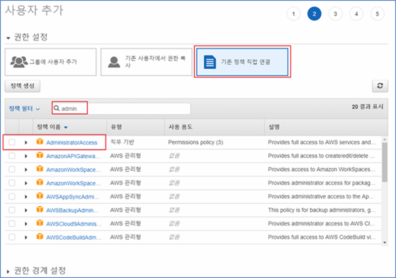 관리자용을 할때는 <AdministratorAccess> 만 선택하자.