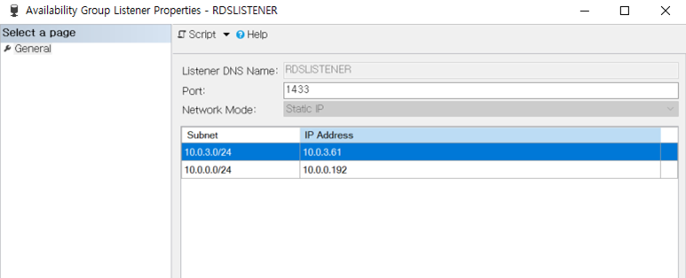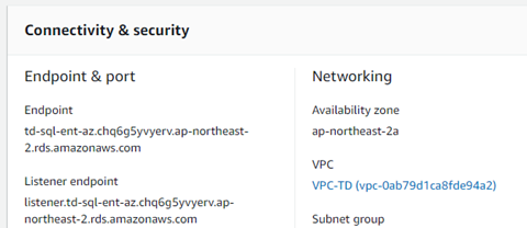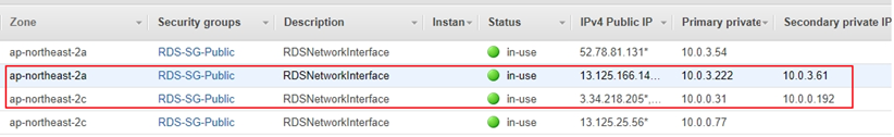 먼저, AG RDS 에서 리스너아이피에 대해서 아래와 같이 확인이 가능하다.