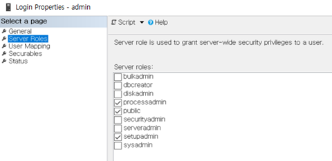 Admin 옵션을 먼저 확인하자.sysadmin권한은 부여를 못한다.