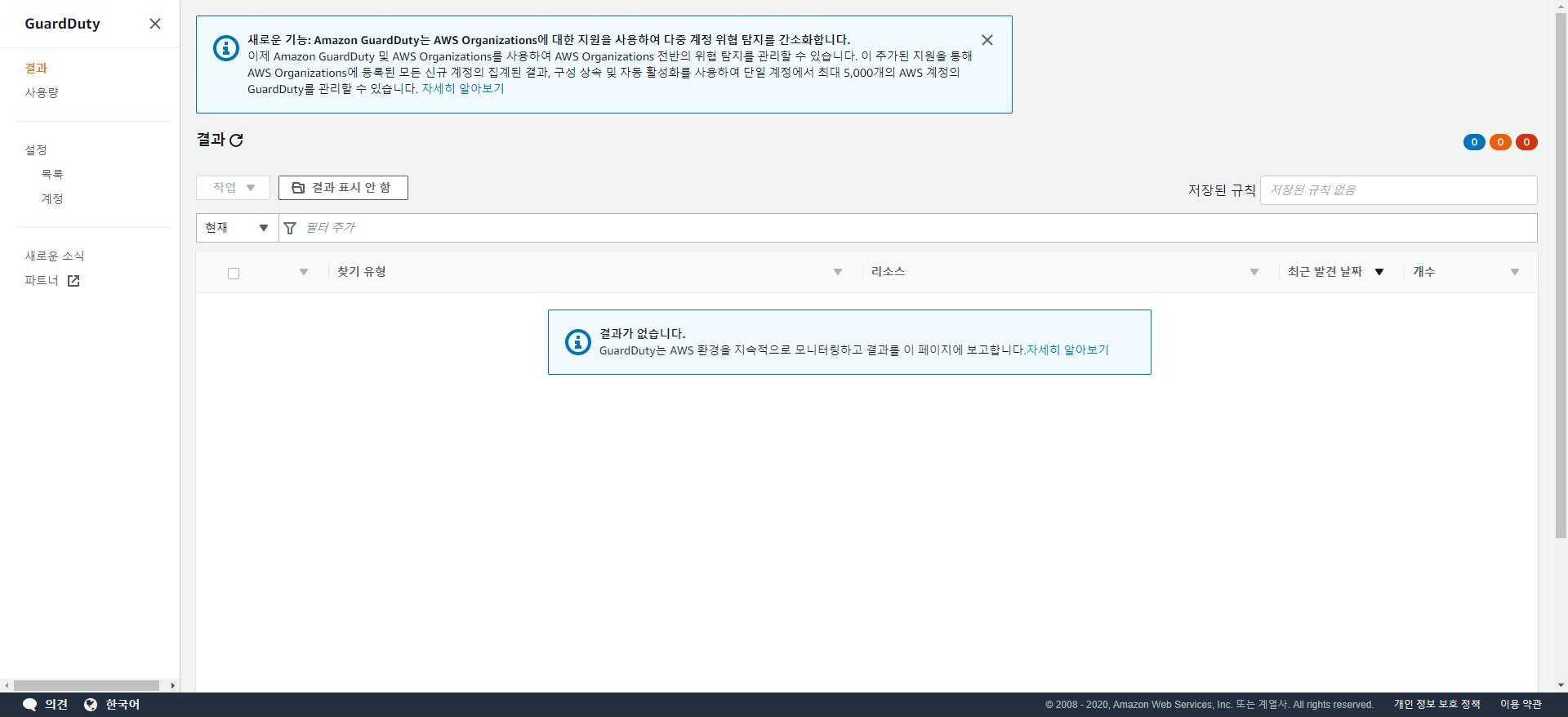 - AWS GuardDuty를 활성화합니다. (30일은 무료 평가판 제공)
