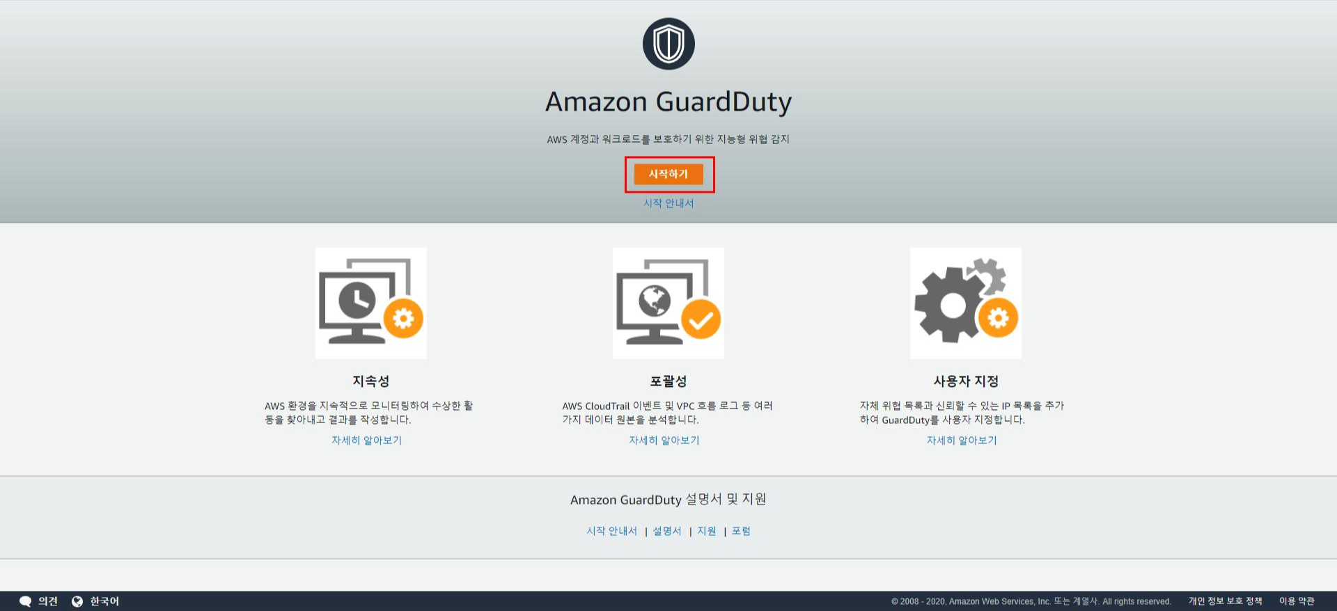 <AWS Console의 GuardDuty 서비스에서 '시작하기' 클릭>