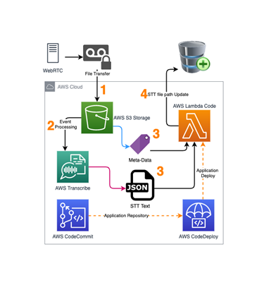 AWS Transcribe 를 통한 STT 처리에 대한 활용 뿐만 아니라, S3 와 Lambda 를 활용한 자동화 방향을 제시하여, 운영 리소스를 사전에 절감할 수 있도록 도움을 주었습니다.
