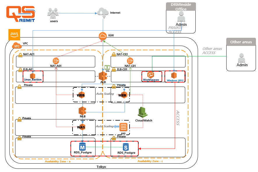 엔앤피코리아는 일본지사의 인프라운영 방안으로 AWS 클라우드 서비스 도입에 대한 컨설팅을 받았습니다. 현재 진행중인 신규 어플리케이션 QS REmit 개발단계에서부터 탄력적인 인프라 활용성과 향후 글로벌 서비스 진출을 위한 네트워크 확장성 그리고 보완부분을 중점적으로 고려하였습니다.